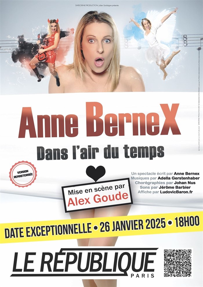 L’événement Anne Bernex dans Dans l'air du temps de type One Woman Show, organisé ici : Le République - Paris, n'est plus disponible à la vente.
