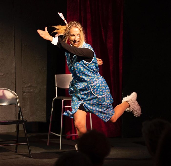 Un show joué et ponctué de parodies chantées par une comédienne délicieusement survoltée.