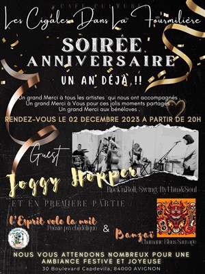 L’événement Anniversaire du café culturel Les Cigales dans la Fourmilière ! 1 an de type Concerts Divers, organisé ici :