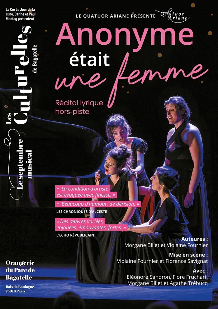 Récital lyrique, décalé, engagé et teinté d'humour transgressif, Anonyme était une femme met en lumière les grandes compositrices dans un grand cri de liberté et un superbe éclat de rire.