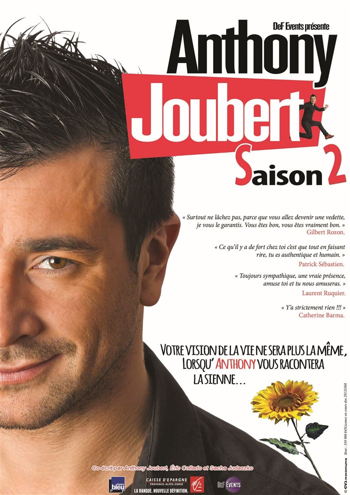 Après " La France a un incroyable talent " sur M6, " Morandini " sur Direct 8 et " On n'demande qu'à en en rire " sur France 2, Anthony Joubert vous présente son nouveau spectacle " Saison 2 ".