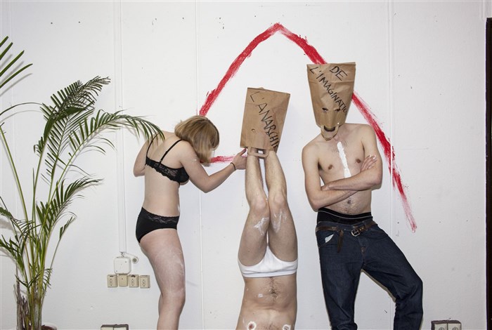 Aujourd'hui avec la troupe que j'ai rassemblée, nous présentons Anarchie en Bavière, Liberté à Brême, Gouttes dans l'océan et Le Village en flammes. Nous avons voulu répéter ces quatre pièces en très peu de temps, dix jours chacune. Nous avons fait en sorte que chaque jour de répétition soit aussi jour de représentation publique. Nous nous sommes mis délibérément en situation d'urgence pour monter ces textes parce qu'il nous a semblé juste de devoir expérimenter l'écriture de Fassbinder dans la panique. La présence d'un public dès le premier jour des répétitions ainsi que les jours suivants générait une tension propice à l'invention de formes simples et radicales. Je pense que l'oeuvre de Fassbinder est une oeuvre de la précipitation. Mon souci n'était pourtant ni de la reproduire ni d'essayer de la revivre." - Gwenaël Morin
