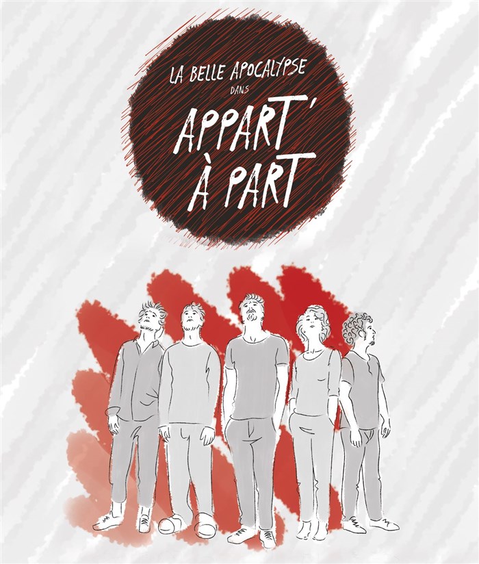 Nous sommes dans un appartement, symbole du groupe et du collectivisme. Nous sommes 5, et nous vivons là, depuis peut-être toujours. Le temps passe étrangement dans cet espace clos. Nos relations bougent et évoluent, avec corporalités, tendresse. Nos agrés vivent avec nous, rendant chaque instant instable et unique. Nous nous tirons les uns les autres, dans une valse acrobatique où chacun porte et s'envole dans un tourbillon de folie acrobatique. Nous sommes 5 dans cet appartement, et nous tournons dans cette vie enivrante... enfermante... Et vous ? Si nous vous y invitions, voudriez-vous rejoindre cet Appart'... À Part ?!