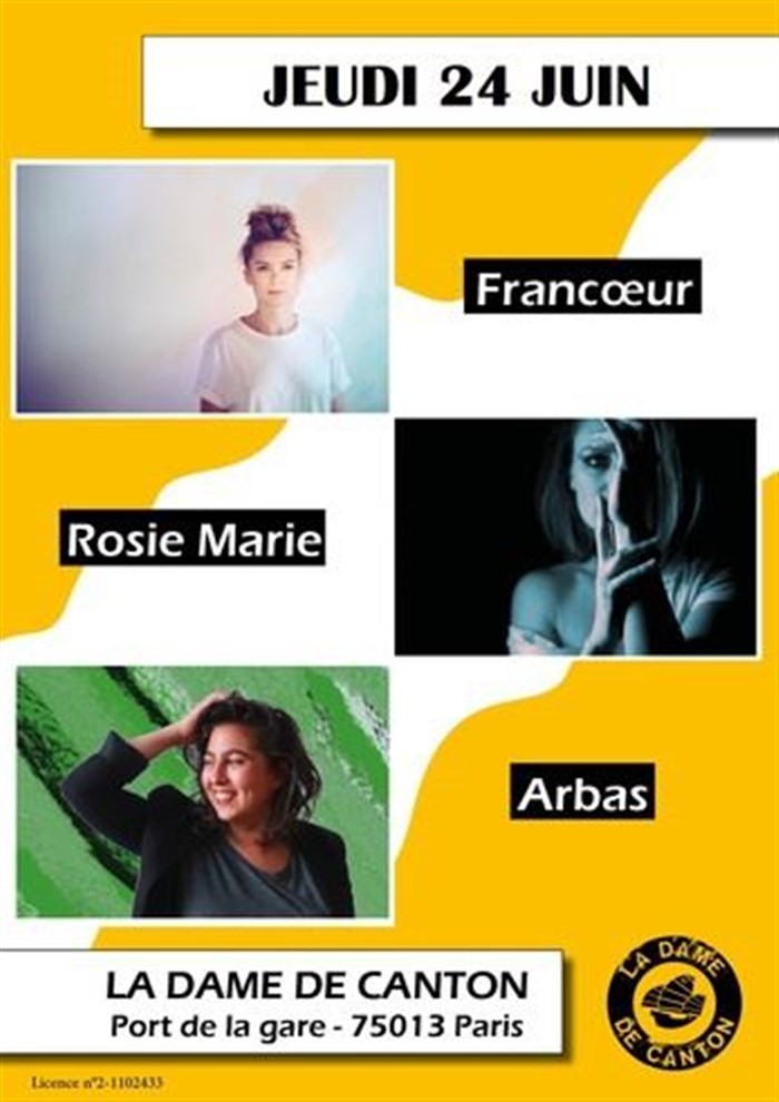 Arbas + Francoeur + Rosie Marie, toutes les séances
