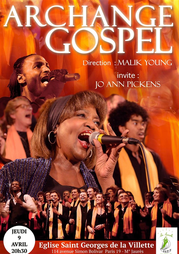 Des grandes voix du Gospel! Sous la direction de Malik Young (Hair, Mamma Mia), Archange Gospel invite la Diva américaine Jo Ann Pickens (Texas).
