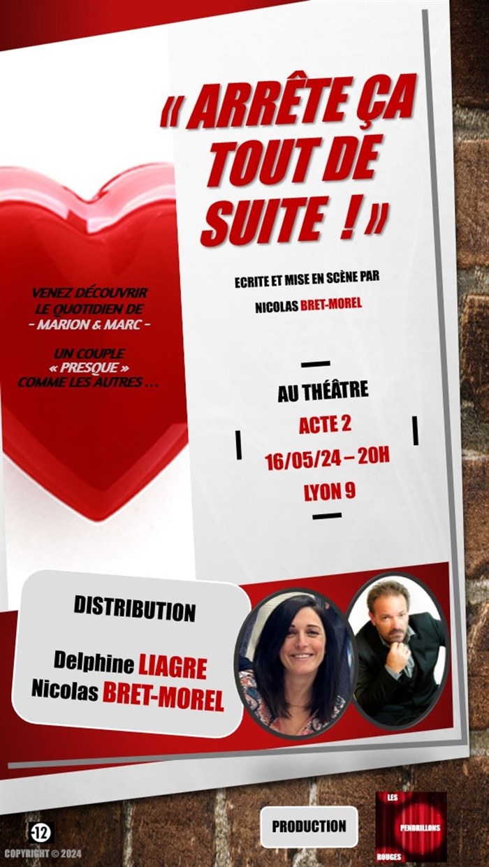 Très bien écrit, des situations drôles qui nous amène vers un vaudeville. Interprétation de 2 acteurs qui nous ressemble, qui nous font rire, qui nous rappelle que la prise de tête n'est pas nécessaire ! La vérité éclatera tôt ou tard. Bravo Nicolas - bravo Delphine. J'ai passé un très bon moment vendredi 29 mars. Allez y, vous allez adorer 👍🤗