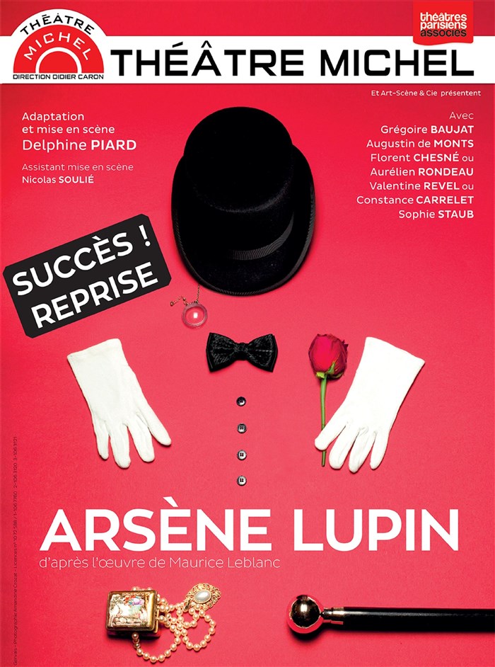 ARSENE LUPIN EN LIVE.Lire Maurice LEBLANC au fond de la classe, c'est bien.Voir Arsène Lupin joué au Théâtre, c'est mieux.Adaptée et mise en scène par Delphine Piard, l'inoxydable comédie policière reprend du service sur les planches.Court et efficace.