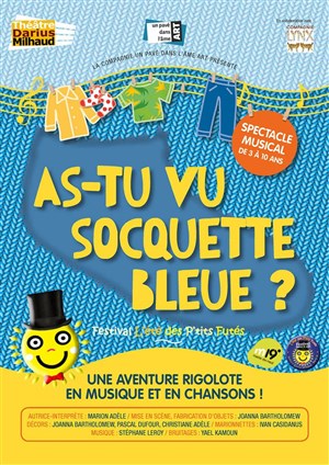 . " As-tu vu socquette bleue ? " vous est présenté dans le cadre du festival parisien de spectacles jeune public " L'été des p'tits futés " organisé par le Théâtre Darius Milhaud. Entrez dans la magie du spectacle !