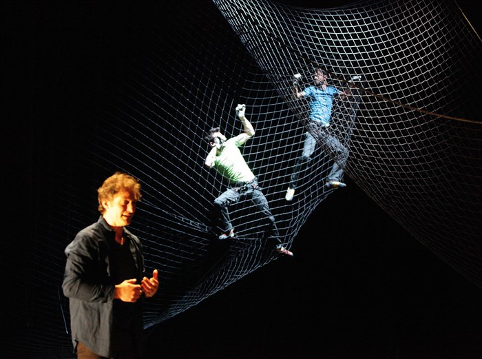 Un conte, fait de mots et d'escalades chorégraphiques et circassiennes, où les corps se présentent tour à tour athlétiques, abandonnés, sans force, soutenus pour ne pas tomber. Où il sera tour à tour question d'ascension et de descente.