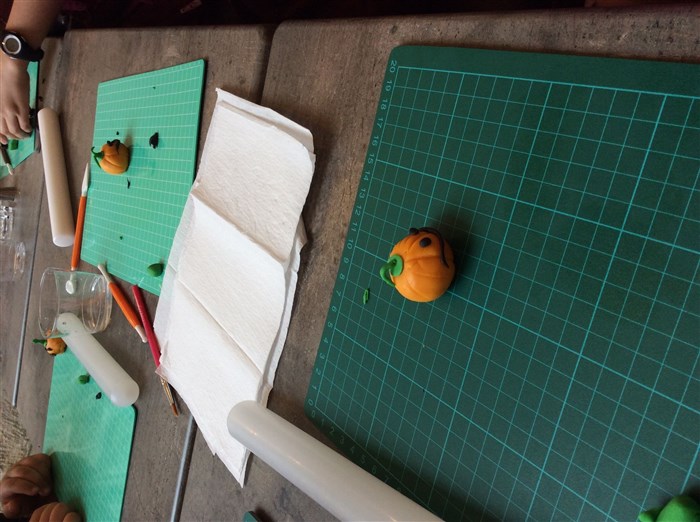 Réalisation d'objets en pâte à sucre pouvant servir de décoration pour des gâteaux. Thème : Halloween.