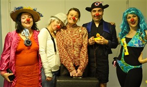 Au-delà de l'idée du clown au nez rouge, les élèves travailleront sur leur clown : ce personnage qui voit, ressent et réagit. La majorité du travail se situe au niveau du corps, dans la façon de bouger et de ressentir par rapport aux sons, aux mouvements et aux mots. Les sens en éveil, sans analyser, sans anticiper : être dans le moment présent, lâcher prise et laisser venir l'émotion. Ecoute et spontanéité, le clown trouve en lui même des réponses à ce que l'autre, public ou clown, lui renvoit. Entre minimalisme et démesure, le clown se cherche à travers l'improvisation, s'invente et s'anime.