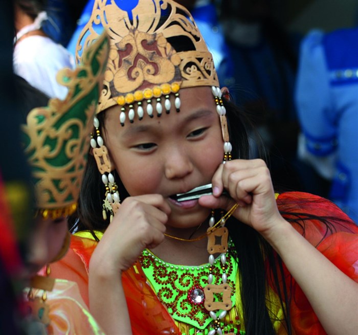 D'apparence insignifiante, la guimbarde est un petit instrument qui se place contre les dents et utilise la cavité buccale comme caisse de résonnance. En République Sakha (Iakoutie), la guimbarde est en métal. A cadre ouvert, elle laisse la languette vibrer à l'intérieur et à l'extérieur de la bouche sous l'impulsion des doigts du musicien.