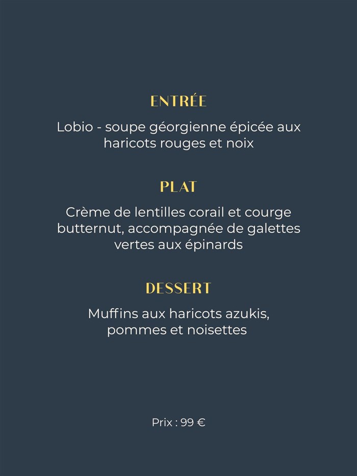 • Entrée : Lobio, soupe géorgienne épicée aux haricots rouges et noix