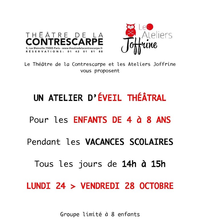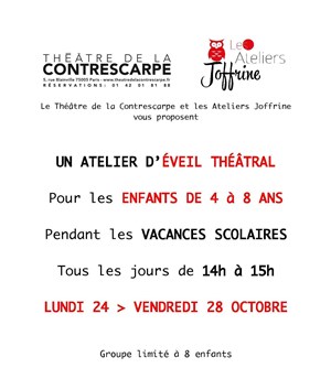 5 séances d'une heure pour : s'éveiller au théâtre, apprendre les notions du jeu scénique, trouver sa place au sein d'un groupe...