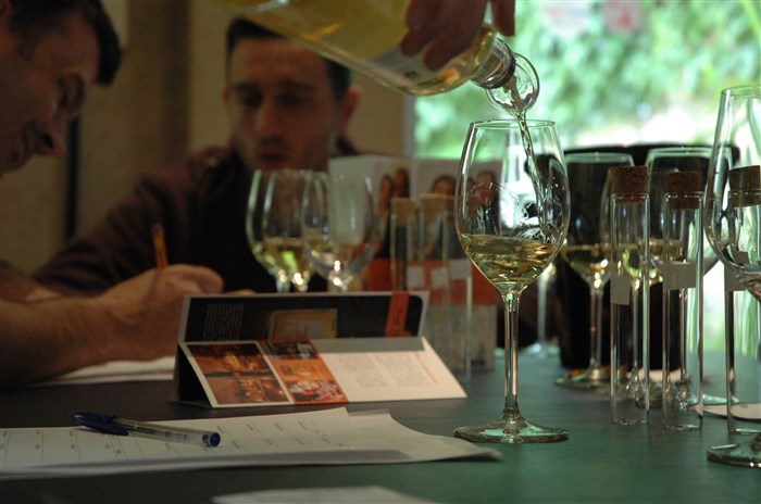 Une séance d'activités ludiques autour de la thématique (1h) : jeu de reconnaissance des arômes, activité assemblage avec des éprouvettes, dégustation des vins en cuve ou barrique