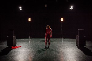 Une figure rouge monochrome au centre de l'espace. Tous les projecteurs sont dirigés vers cette figure. La lumière la dévoile, la dessine, la brûle. Le son emplit son corps et l'espace, il la met en mouvement de manière martiale, répétitive. Ce son l'amène implacablement à l'épuisement, à la transe et à l'incandescence.