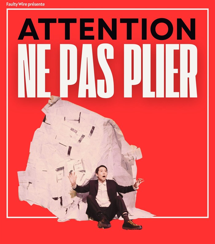 Entre théâtre gestuel, danse, théâtre d'objet et musique live, Attention ne pas plier est une oeuvre visuelle burlesque et poétique. Le spectacle explore le tumulte émotionnel d'une rupture, observé depuis un bureau d'administration.