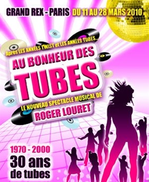 Avec plus de 4 millions de spectateurs dans les salles et des records successifs d'audimat notamment lors de l'émission en prime time " Les années tubes " sur TF1 présentée par Jean-Pierre FOUCAULT, La compagnie Roger LOURET revient pour vous offrir sur la scène du GRAND REX son nouveau spectacle " AU BONHEUR DES TUBES ".