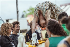 Autour d'un bon café et d'un concours de lancers de mouillettes beurrées? ; circassiens et convives devront user de souplesse et d'agilité. Entre suspension et contorsion, vous couperez le chapeau de l'oeuf à la coque de votre voisin, sous son regard complice et amusé. Et dans ce temps propice au partage et à la convivialité, goûtez en douceur à la joie du jour qui arrive? !