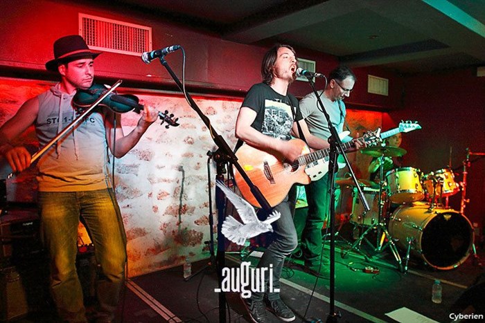 Groupe musical Chanson française/rock, Auguri propose des textes à la fois personnels et universels empreints d'énergie rock