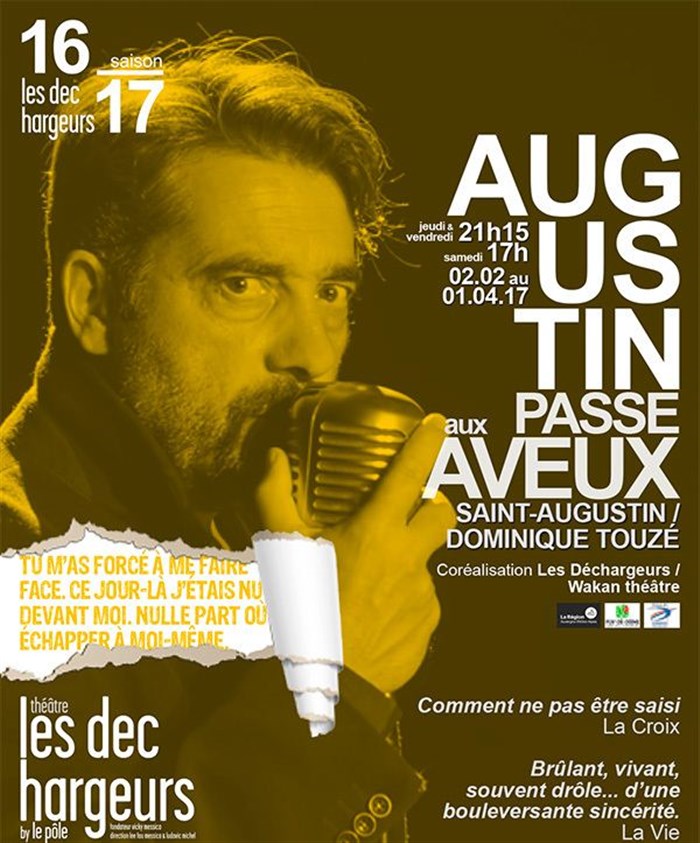 Voir plusc'est une pièce magnifique ment interprété par dominique touzé; je lui souhaite d'obtenir le molière du meilleur acteur! saint augustin, ses aveux aujourd'hui: très belle mise en scène sobre avec une violoncelliste , des effets de lumière sobre et percutants! tout cela dans une cave du théâtre "les déchargeurs" magnifiquement choisi pour un homme qui cherche à comprendre la nature humaine en s'en remetant à Jésus! merci pour c beau moment; Thibaut