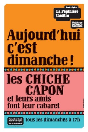 Quatuor de clowns modernes et farfelus, les Chiche Capon et leurs invités-surprise proposent chaque dimanche à la Pépinière un cabaret (pour grands et petits) ou le burlesque le dispute à l'absurde.