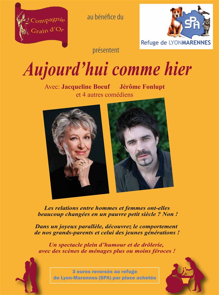 Spectacle au bénéfice du Refuge SPA de Lyon-Marennes: 3 euros reversés par place achetée.