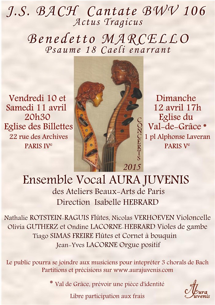 Bach et Marcello seront à l'honneur juste après le week-end de Pâques, avec l'ensemble vocal Aura Juvenis et des musiciens professionnels