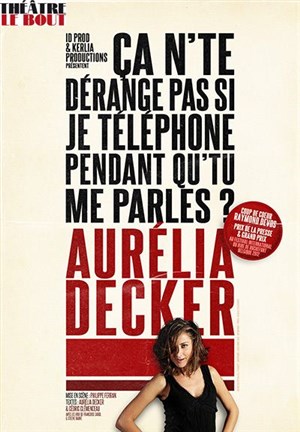 L’événement Aurélia Decker dans Ca n'te dérange pas si je téléphone pendant qu'tu me parles ? de type One Woman Show, organisé ici : Théâtre Le Bout -