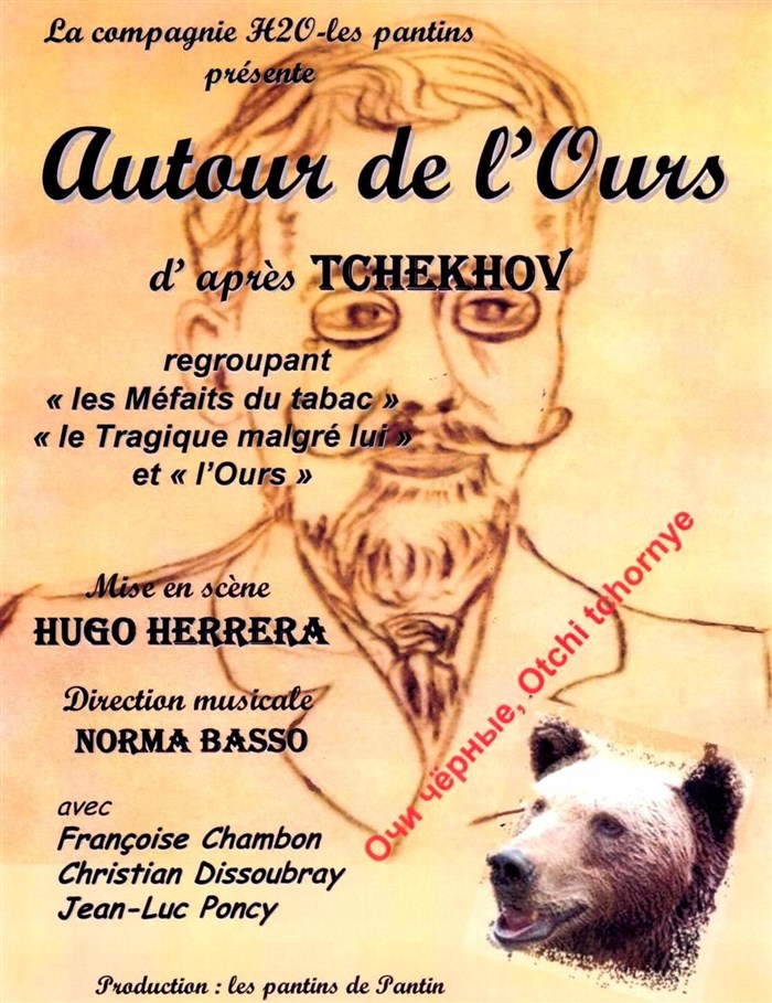 Trois courtes pièces de Tchékhov, "Les Méfaits du tabac " scène monologue en un acte, " Le Tragique malgré lui " et " L'Ours " deux farces en un acte.
