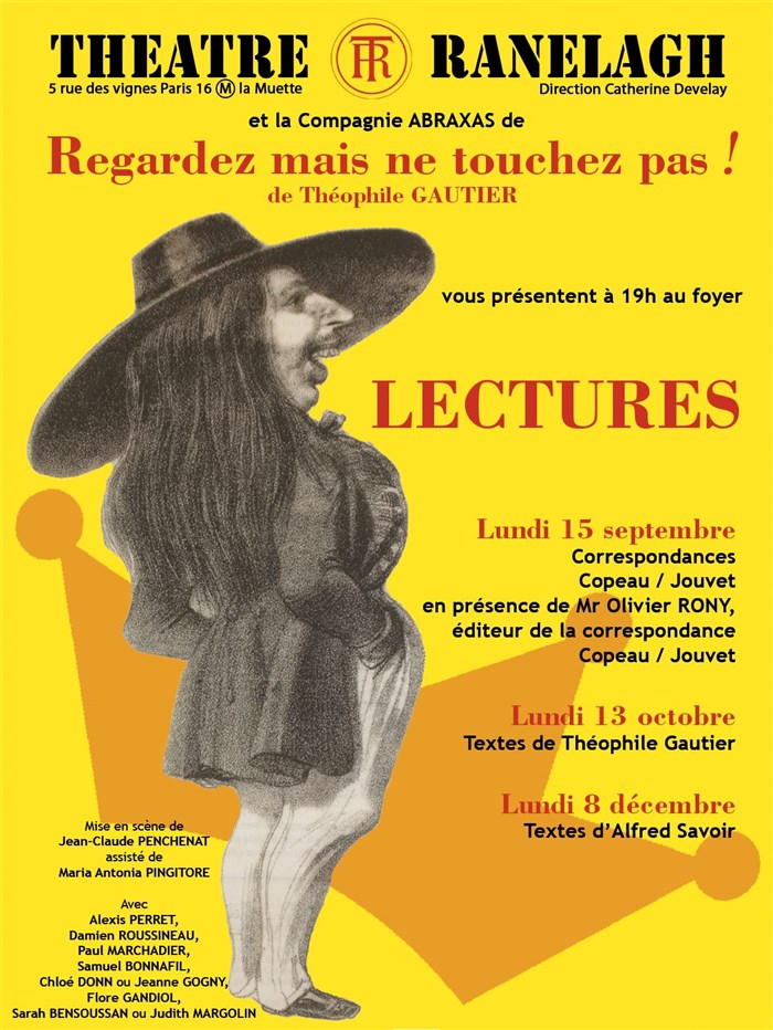 La Compagnie Abraxas vous fait connaître leur Théophile Gautier, (jouant depuis 2011 Regardez mais ne touchez pas !) lors de ces lectures.