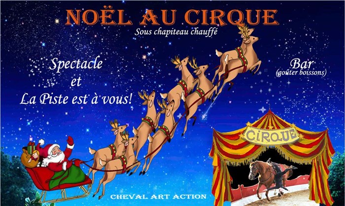 Sous chapiteau chauffé : spectacle cirque + goûter avec le Père Noël + "la Piste est à vous", à cheval avec les artistes en toute sécurité !