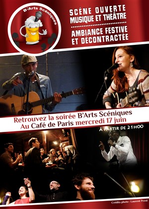 B'Arts Scéniques revient pour sa 14ème édition, toujours au Café de Paris (appelé par les connaisseur Café de Lutèce), toujours à partir de 20h30. Au programme, de l'humour à vous faire un déboitemenduménix, et des musiciens qui vous ferons oublier labelledecadix.