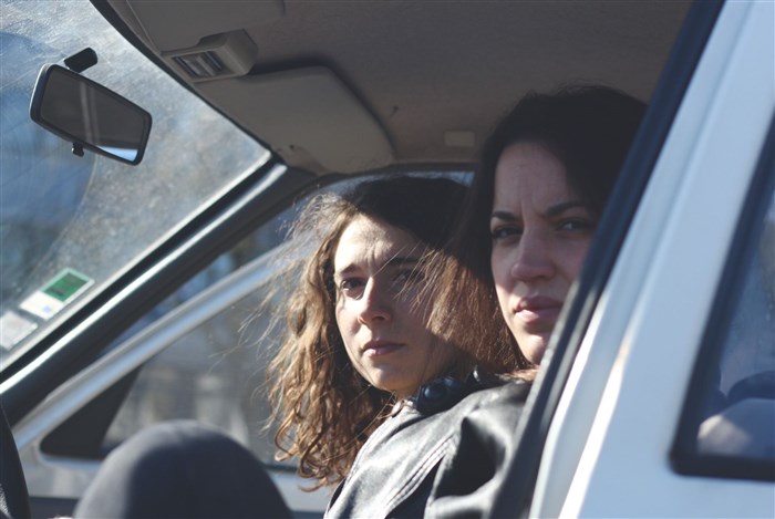 Quatre bagnoles et un étrange numéro de duettistes sur un parking.