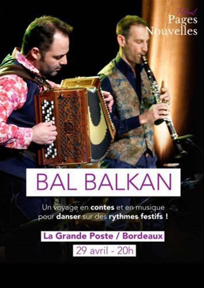 Lors du Festival Pages Nouvelles qui se déroule à la grande poste de Bordeaux, venez voyager avec le Bal Balkan.
