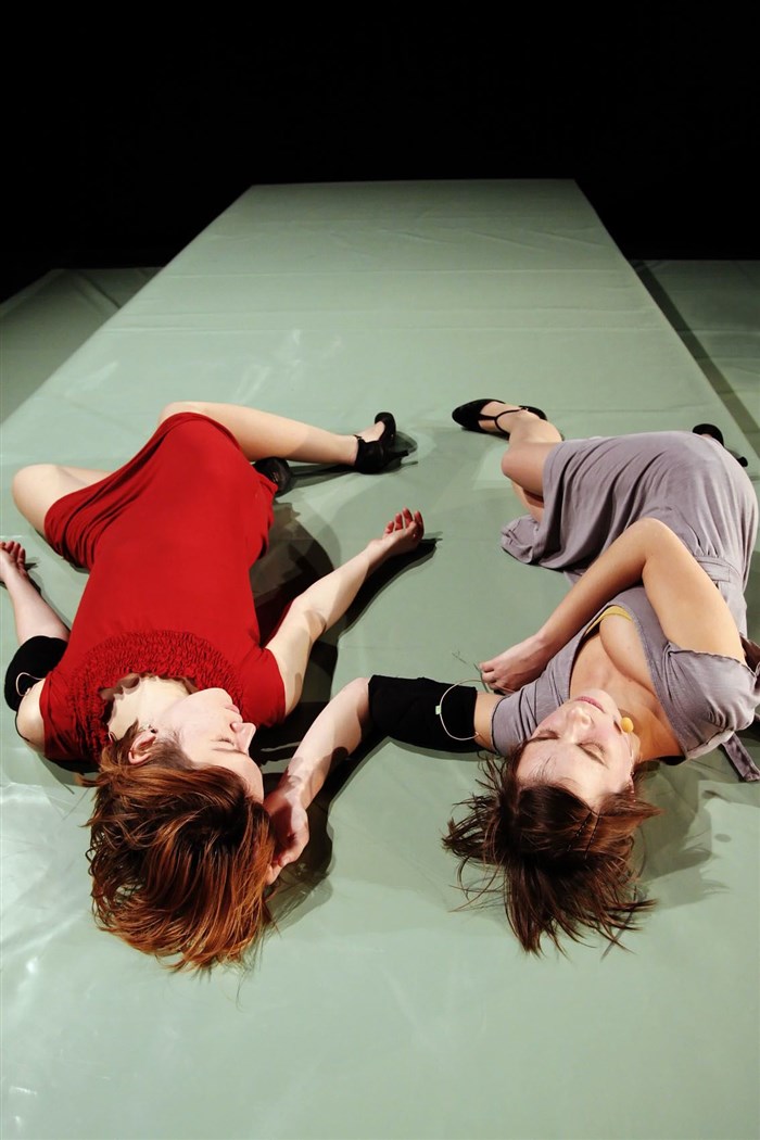 À l'épreuve du plateau, elle invente une poésie du choc et de la chute des corps.