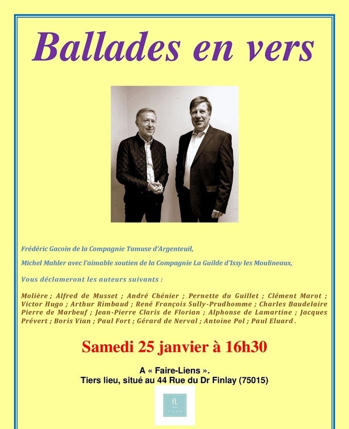 L’événement Ballades en vers de type Lecture / Poésie / Contes, organisé ici :