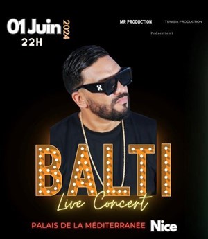 La bête de la scène maghrébine Balti en live show le 01 Juin 2024 à Nice. Un concert attendu pour vivre les hits de Balti ...