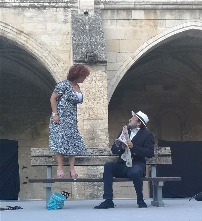 Un banc dans un jardin. Des couples vont s'y rencontrer, s'y déchirer, s'y retrouver. Par la Cie amateur Un bout de chemin (Pujaut-30)