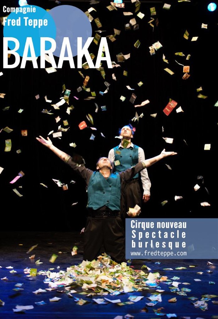 Entre art du cirque et théâtre d'objet, Baraka est un spectacle tendre et malicieux dans lequel deux personnages, tels des barmen désoeuvrés, s'invitent à des jeux absurdes, esthétiques ou comiques, virtuoses ou simplistes. Dans la pure tradition du burlesque, et au rythme qu'impose le genre, ils détournent les objets de leurs usages premiers, font voler les théières et danser les verres, mettent les sucres en lévitation dans des chorégraphies mécaniques, font onduler les sachets de thé comme le joueur de flûte fait lever le serpent.