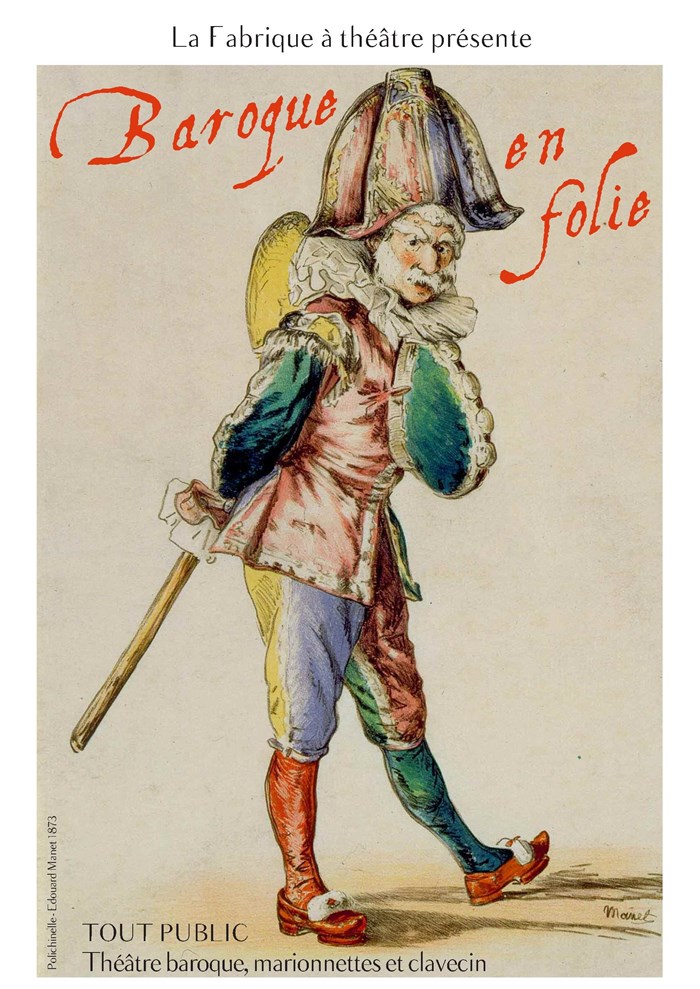 Polichinelle, personnage type issu de la Commedia dell'arte, est fanfaron et irrévérencieux, à l'image d'un Tabarin de chiffon. Cependant, il sera garant pendant le spectacle de donner aux oreilles du 21ème siècle les éléments de compréhension des règles de déclamation et gestuelle baroques.