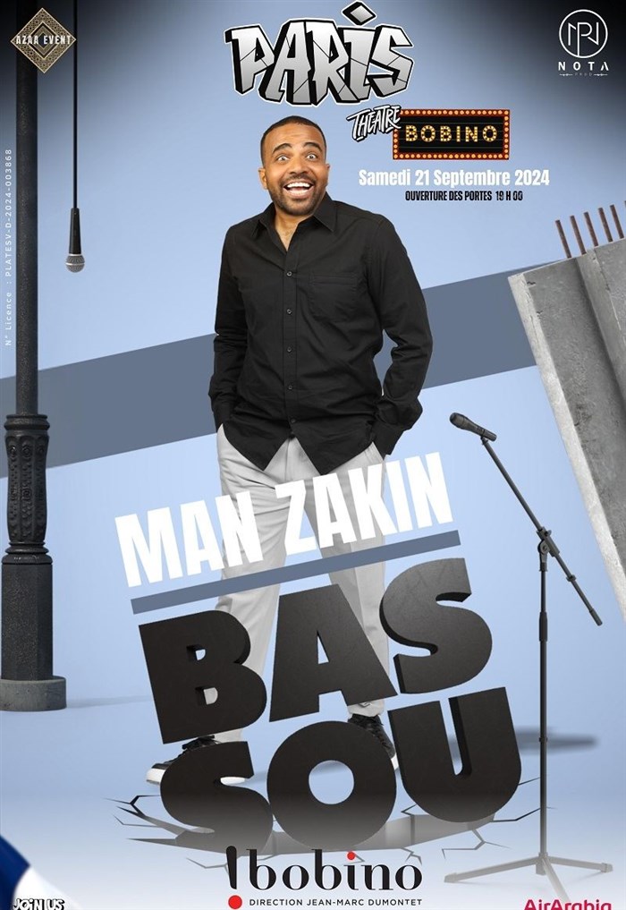 Fort de son succès fulgurant dans la série hilarante "Si Al Kala", Bassou revient avec son nouveau spectacle inédit à Paris Man-Zakin.