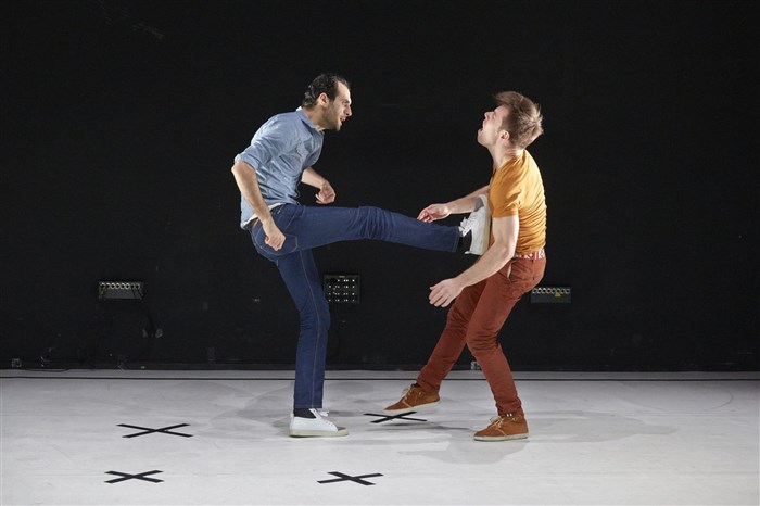 Avec Bataille, Pierre Rigal conçoit un duo masculin pour le maître de la percussion corporelle Hassan Razak et l'acrobate Pierre Cartonnet et offre un corps à corps jubilatoire, entre embrassades et bastonnades.