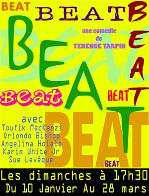 Après le succès de " T'es trop moche ! ", 3 ans à l'affiche du théâtre de la Providence, venez découvrir la nouvelle farce de Terence Tarpin : " Beat ", un laissez-passer pour le non-sens, 45 minutes de folie ordinaire servies par 4 comédiens en perte de contrôle...On vous aura prévenu...
