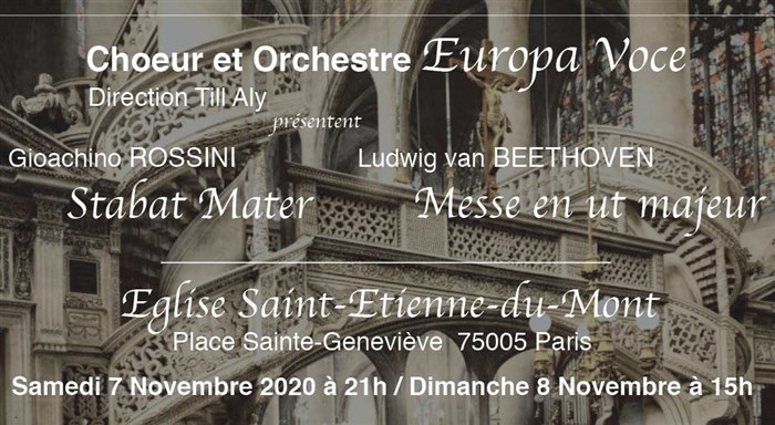 Seront chantées la Messe en Ut de Beethoven, dont on fête cette année le 250ème anniversaire de sa naissance, est moins jouée que la Missa Solemnis mais très puissante vocalement et le Stabat Mater de Rossini dont on ne sait s'il s'agit d'une musique profane ou d'une musique sacrée mais qui déclenche toujours un immense enthousiasme.
