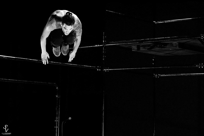 L'acrobate yamakasi Tony Thich vous plonge dans sa pratique du Parkour, ou Art du déplacement en milieu urbain, dans un décor fait de métal et de plexiglas. Avec ce solo, évocation du mythe d'Icare, il défie la gravité et évolue de façon vertigineuse au son de L'Eté de Vivaldi, dans un espace scénographique aux multiples dimensions. Flagrant Délire constitue le dernier acte du triptyque " Flag " dans lequel Yann Lheureux poursuit sa réflexion sur les liens existant entre identité et territoire.