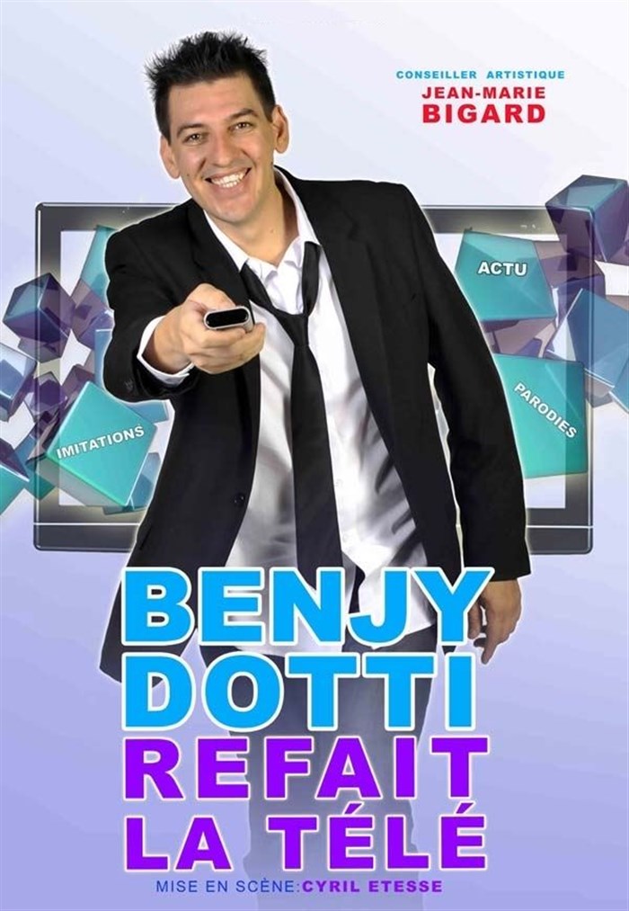 Apres avoir écumé les scènes parisiennes,télés,l'humoriste Parodieur Benjy Dotti revient avec le nouveau spectacle avec conseiller, Jean-Marie Bigard
