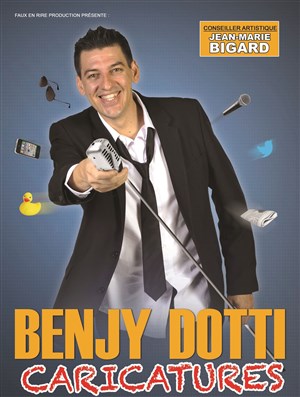 Dans ce nouveau spectacle Caricatures ! Benjy Dotti casse les codes et ose dépoussiérer le métier d'imitateur, il singe les artistes avec brio et décortique l'actualité pour toutes les générations confondues. Sous les conseils artistiques de Jean-Marie Bigard, Benjy Dotti n'a pas hésité à entraîner dans sa folie son co-auteur Pascal Argence (Anne Roumanoff, Raphaël Mezrahi..) et ensemble ils s'autorisent, pour nos plus grands fous rires, à ne pas se fixer de limites dans ce spectacle, caustiques mais toujours drôles...