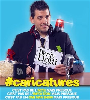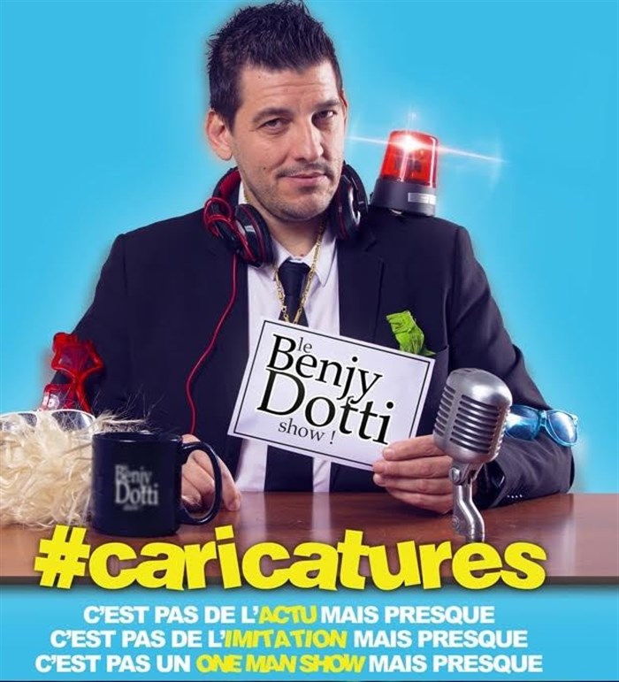 Benjy Dotti Caricatures à la manière d'un late show à l'américaine, l'actu, les People, les politiques... Performance live, grand moments de Music-Hall, détournements vidéo au programme de cet artiste et tout ceci "En toute simplicité et avec quelques accessoires".
