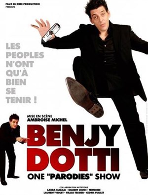 Pour son nouveau spectacle, "Parodies", il s'entoure de Laurent Violet, Gilbert Jouin, Ternoise et Gilles Tessier. Toujours aussi caustique et corrosif, Benjy Dotti parodie l'actu et les peoples en passant en revue une palette de 40 artistes. Un véritable show mis en scène par Ambroise Michel ( plus belle la vie rudy ) et la chorégraphe Laura Sialelli.